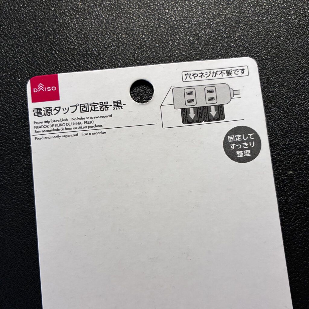 取り付けにはダイソーで売っている電源タップを固定するこちらの商品を使います。両面テープで取り付ける場所とドッキングステーションに貼ります。