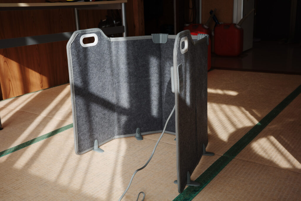 この2点はパネルヒーターならではのメリット。特に車中泊との相性は良く、寝袋や布団に暖気を閉じ込めれば、安心して長時間使える暖房として活躍しそう。ポータブル電源さえあれば、一晩じっくり使えると思う。