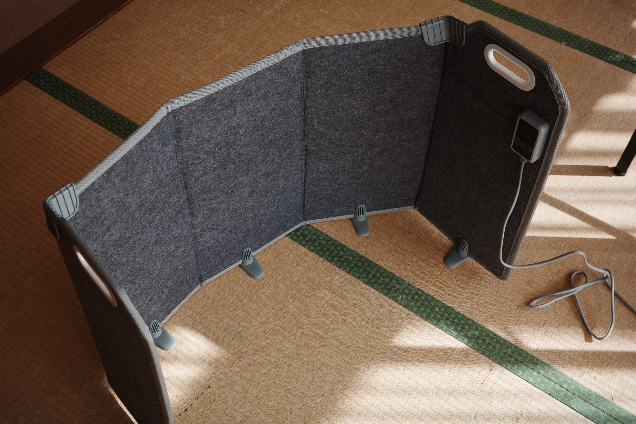 この製品は空間を急激に暖めるタイプではなく、じんわりと“保温する”形の暖房。